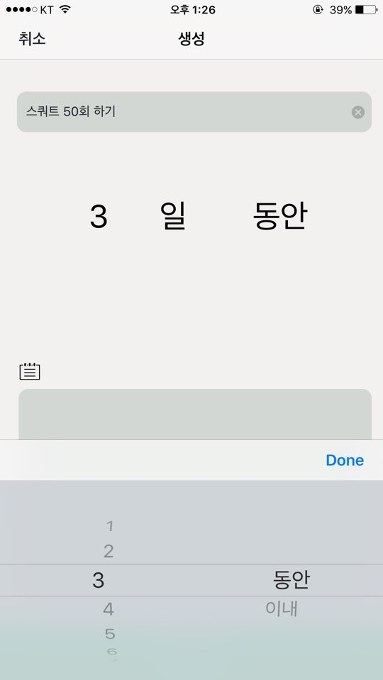 구체적인 계획을 설정하고 1일부터 7일까지 원하는 일 수를 데드라인으로 줄 수 있습니다.